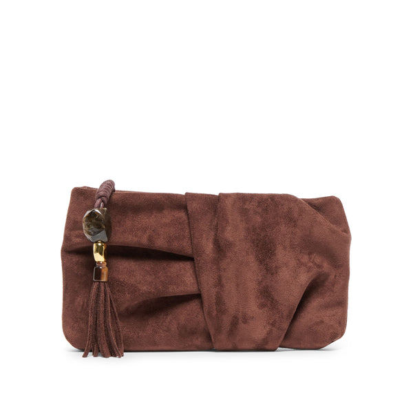 Perfectly pleated and gathered for pretty texture, this zip-top clutch comes with its own tasseled charm as well as an optional drop-in chain strap.
