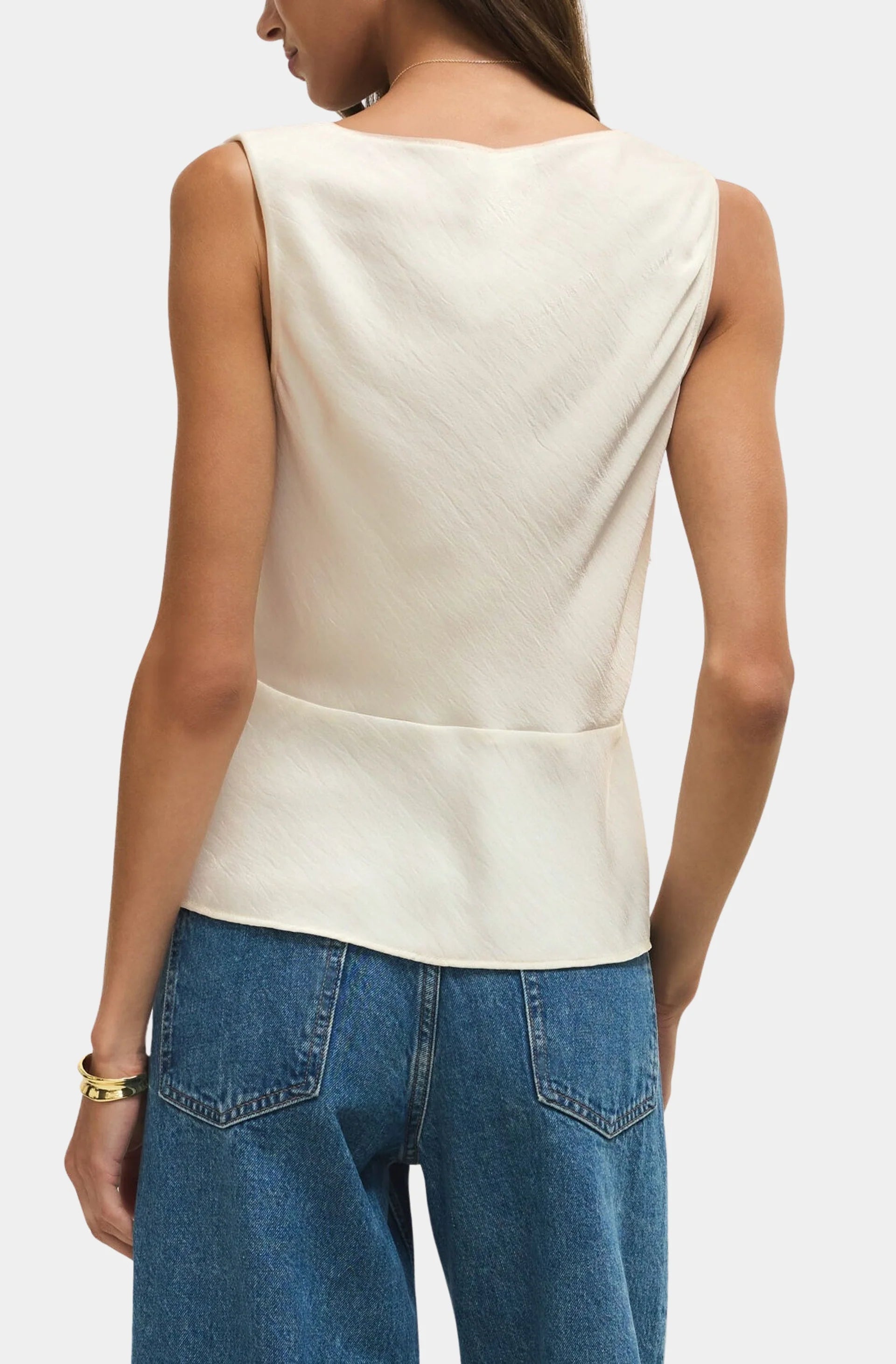The Luana Top is a sleeveless, relaxed-fit top with a gentle front tie detail. Easy to style with jeans or skirts, this sleeveless top is perfect for layering or wearing alone on warm days.