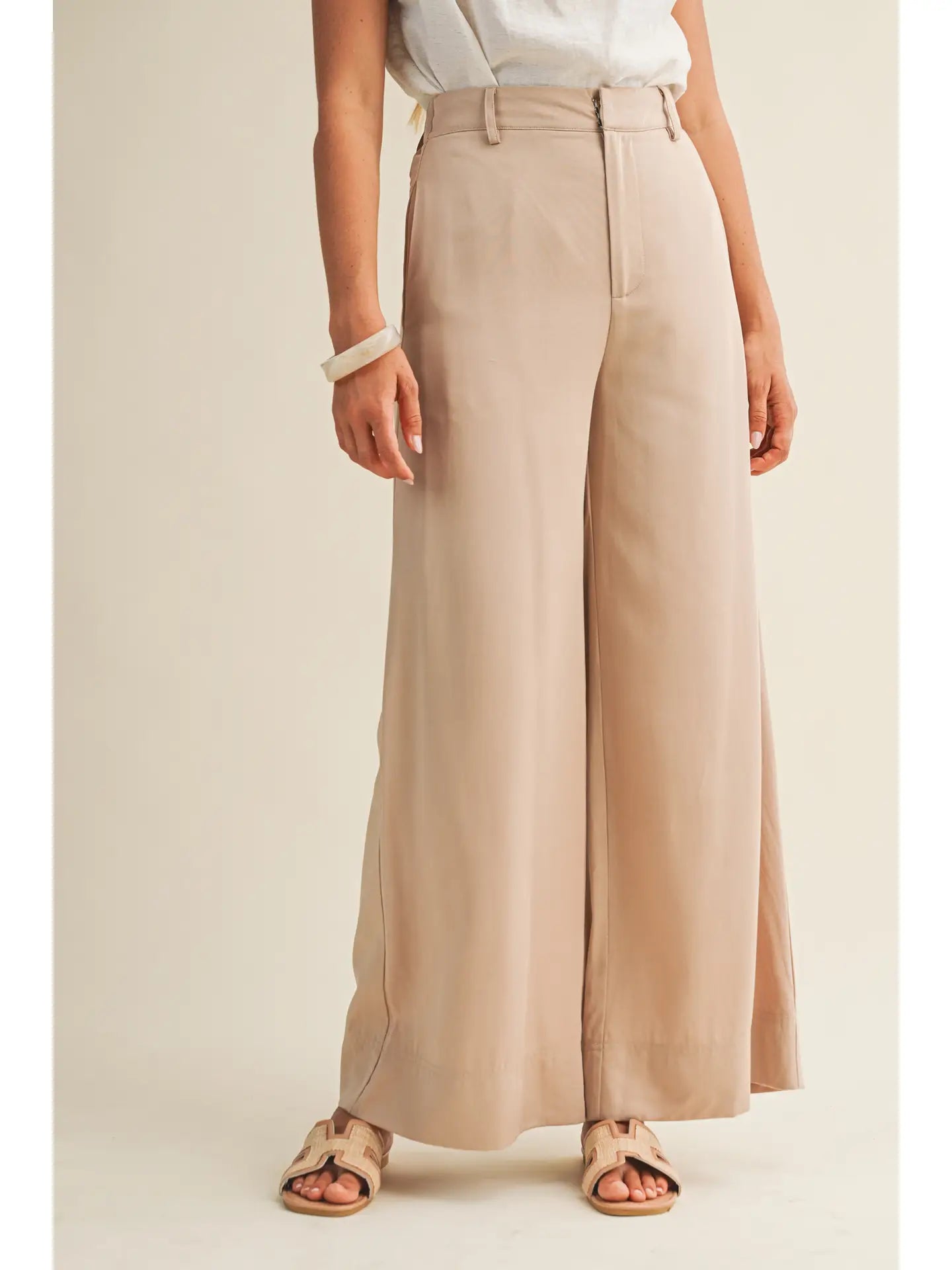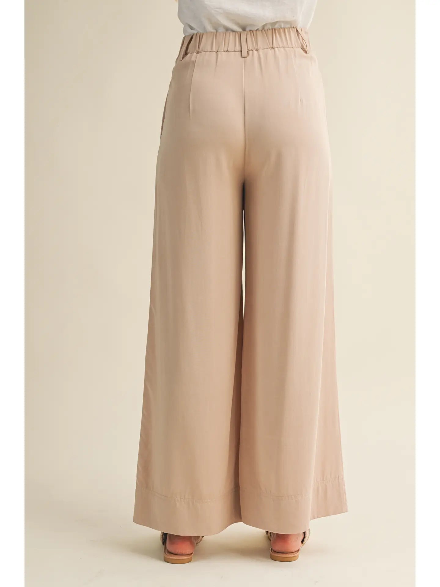 Elastic High Waist Wide Leg Pants (Comes in Beige & Brown).