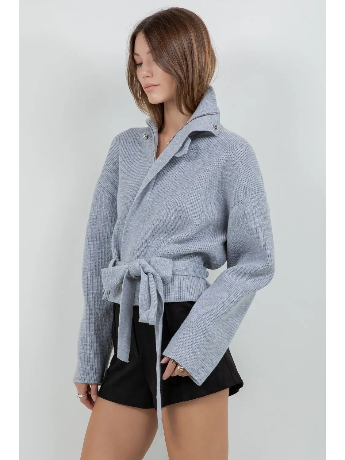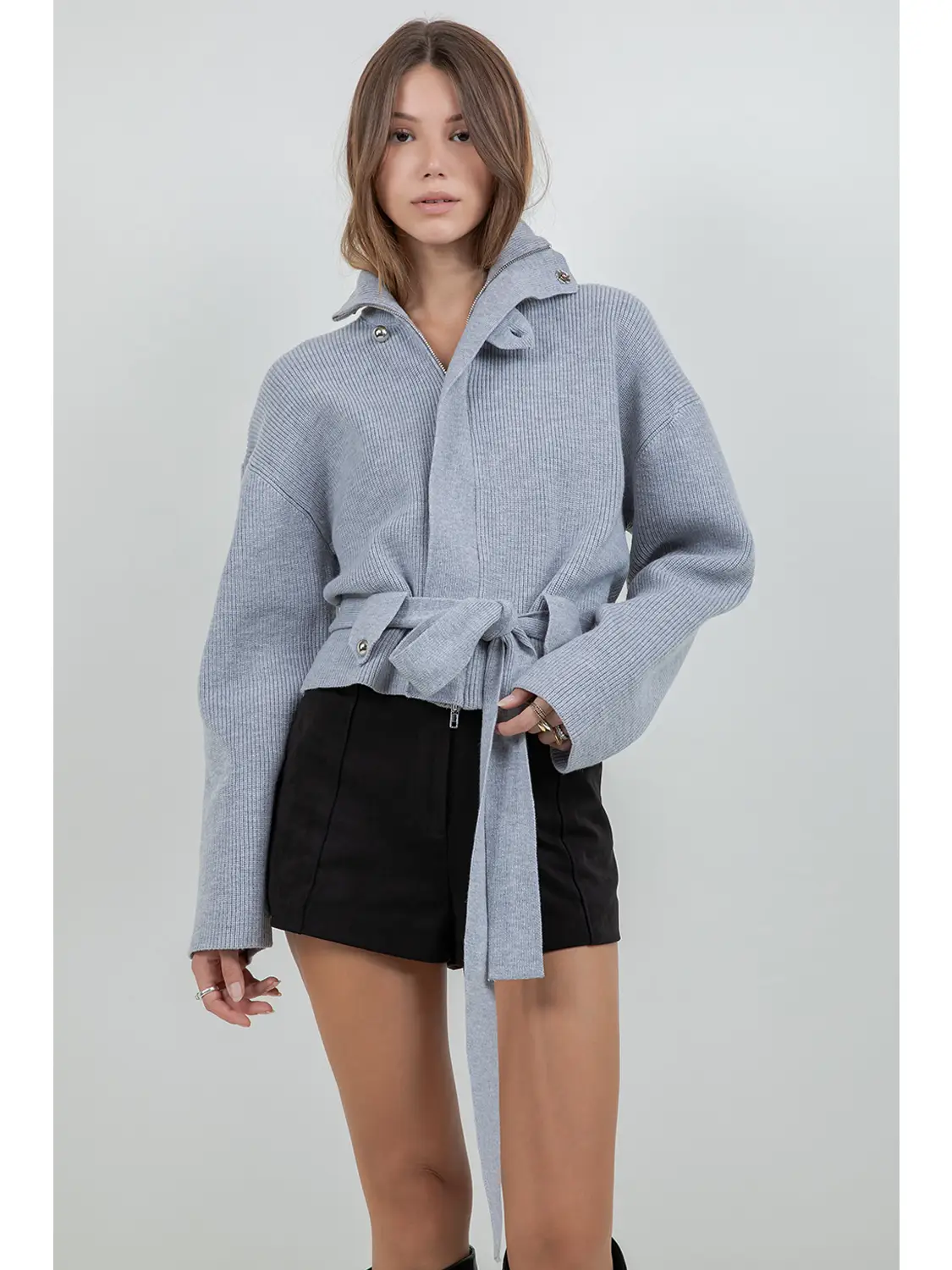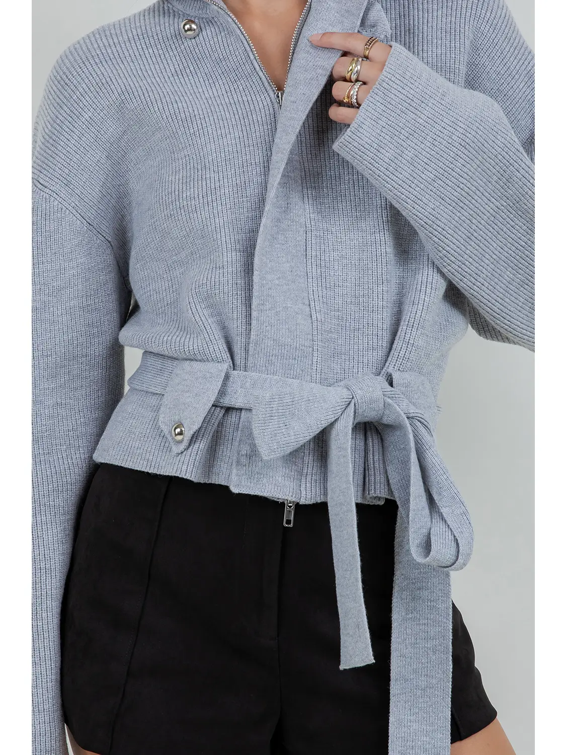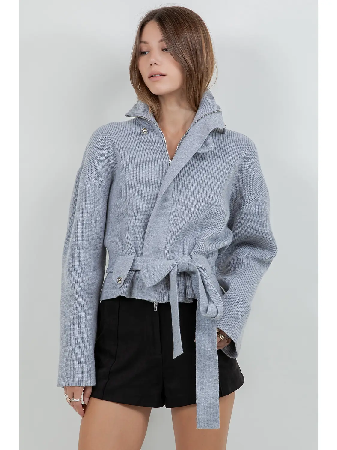 Heather Grey Knitted Sweater Jacket