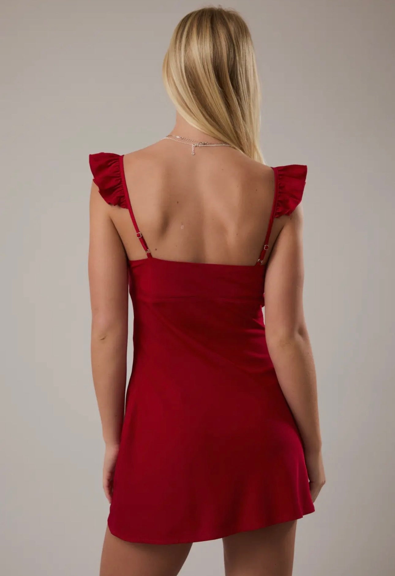 Red Frill Pinch Bust Detail Bia Mini Dress