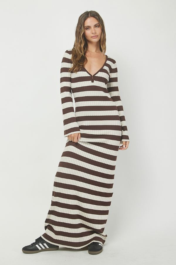 Cream & Mocha Long Sleeve Striped Sweater Maxi Dress