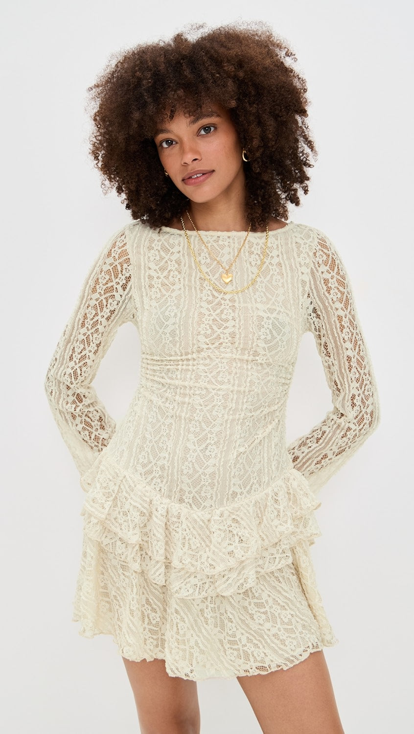 Tabby Lace Mini Dress-Cream